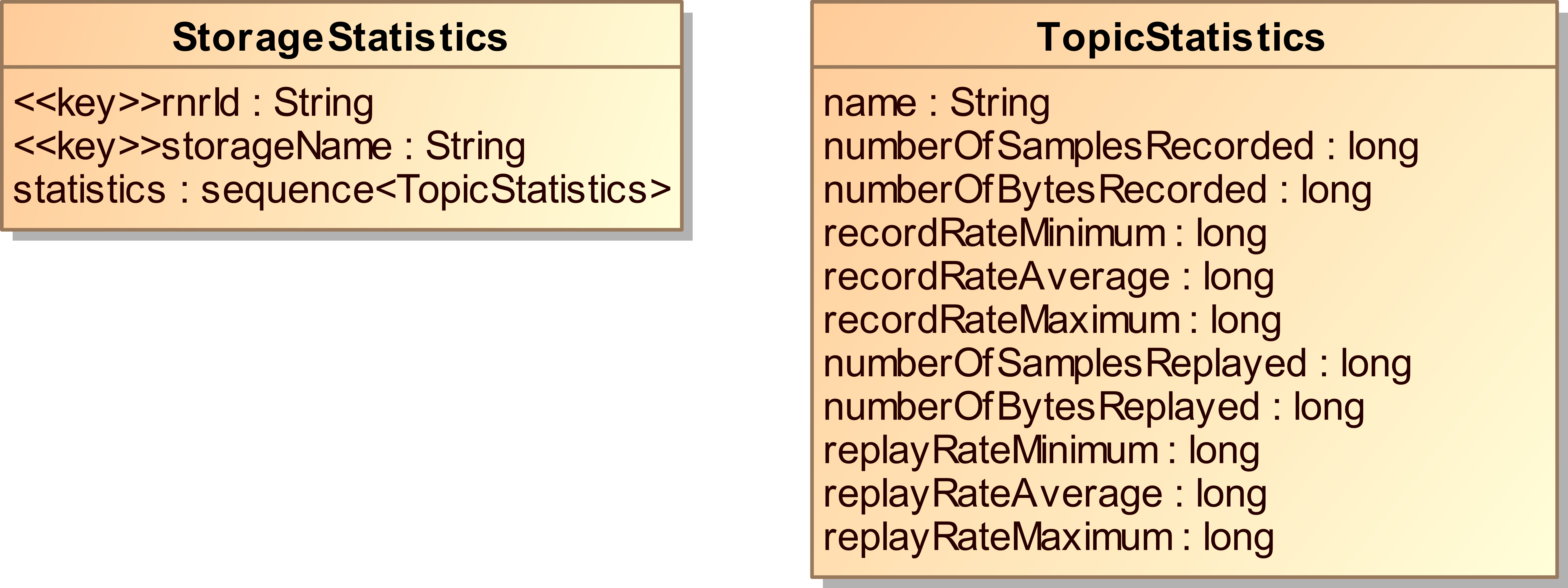 Properties of the data contained in a storage. The following properties are available per recorded topic: