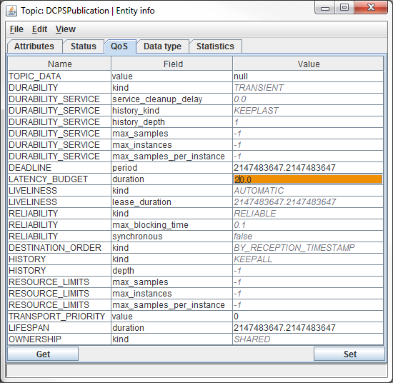 For the Publisher and Subscriber a pre-defined QoS profile DefaultQoS