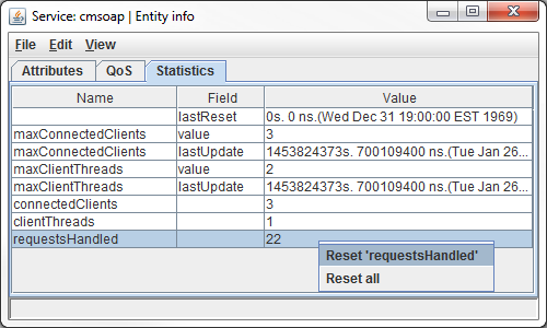 When domain URI value c is used and the CMSOAP service and/or OpenSplice is not running at the specified node URL, the message ‘IOException: Connection refused’ appears in the status bar of the dialog window.