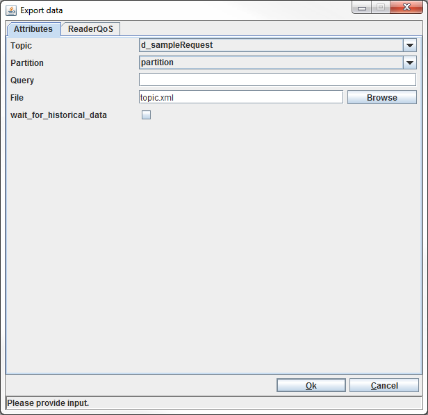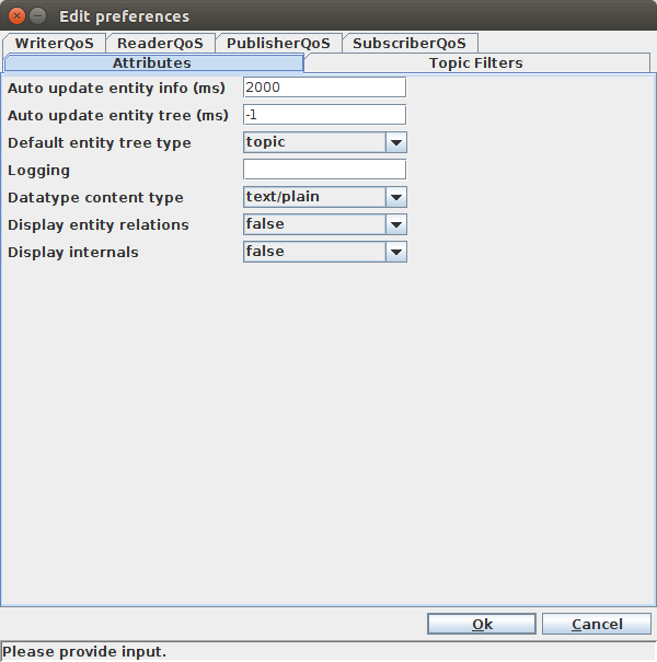 When the OK button is clicked, OpenSplice Tuner tries to open a connection to the domain that is associated with the supplied domain URI. If the domain exists, OpenSplice Tuner connects to that domain. If it does not exist, the message ‘Supplied URI not available’ appears in the status bar of the dialog window.